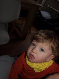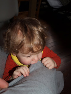 he isnt walking yet... still way up there on his tippy toes