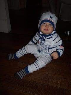 These are so cute... astronaut pj's.. definitely will be selling these on the site WM new game, drumming with the dogs bowls on the feet Yay he is pulling himself up on lots of things now... He likes hanging off the oven handle, getting his groove on @ look at himself in the reflection... love him