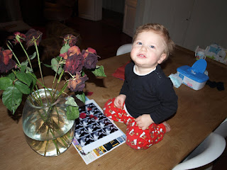 WM is really fascinated about everything.... how things work... how come a petal comes off a rose? and then tries to put it back... too cute he is talking ALL the time ' didideeddi' laying on the floor and just lying there is also another past time
