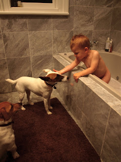 their dog Foxy was loving tub time with winsty, and also time with atlas... love is in the air!