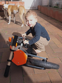 think it will take a while for him to get used to this.... so far, he just spins the wheels...